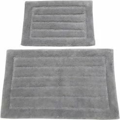 The Chesapeake Merchandising Celeste Cotton Bath Rug 2 pc. Set is crafted in 100% Cotton. It includes rug and step out tub mat. Super soft and plush cotton provides comfort. Absorbs moisture readily. Easy Care Machine Wash and dry at low temperature. Available in attractive colors that will fit into almost any bathroom. Rugs Size 20 in. x32 in. and Step Out Mat Size 17 in. x 24 in. Model: 33663.
