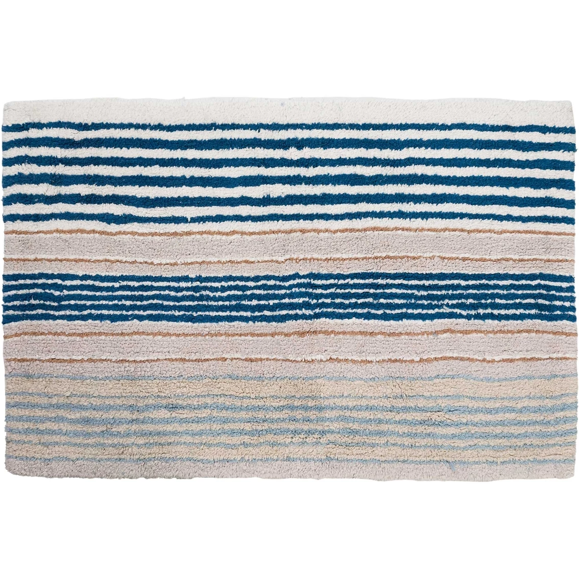 Made from 100% cotton, this 21 x 34 in. rug from Creative Bath features tabletop tufted construction and a blue Ticking Stripe pattern. Rug is machine washable for easy care. Style: AR-R1029.
