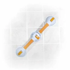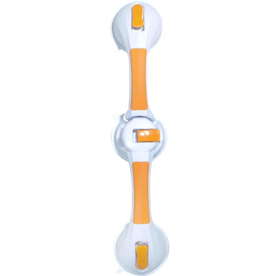This 19.75 in. suction cup grab bar by Drive Medical is a dual rotating grab bar, allowing you the added versatility of adjusting the bars to multiple angles. It can be installed and removed without the hassle of tools or a service professional, allowing the product to be used right out of the package. The large suction cups provide an extremely strong hold. Release levels make attaching and detaching the bar a cinch. A color indicator shows you whether installation was “safe secure” or if you must “re-affix” the grab bar. The product is guaranteed to not damage your property. The suction cup is 4 in. in diameter and must make full contact with a smooth surface without breaking grout.
