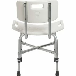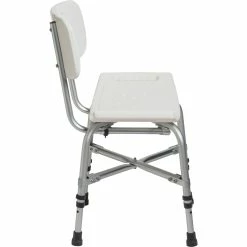 With a 500-pound weight capacity, this bariatric bath bench from Drive Medical is strong and sturdy. A cross brace attached with aircraft style rivets provides dependable strength. The blow molding on the back and seat are contoured to provide extra comfort. Drainage holes in the seat reduce slipping, while adjustable height legs ensure a proper fit. The aluminum frame is lightweight, durable and corrosion proof. Model: 12021KD-1.