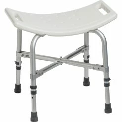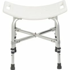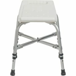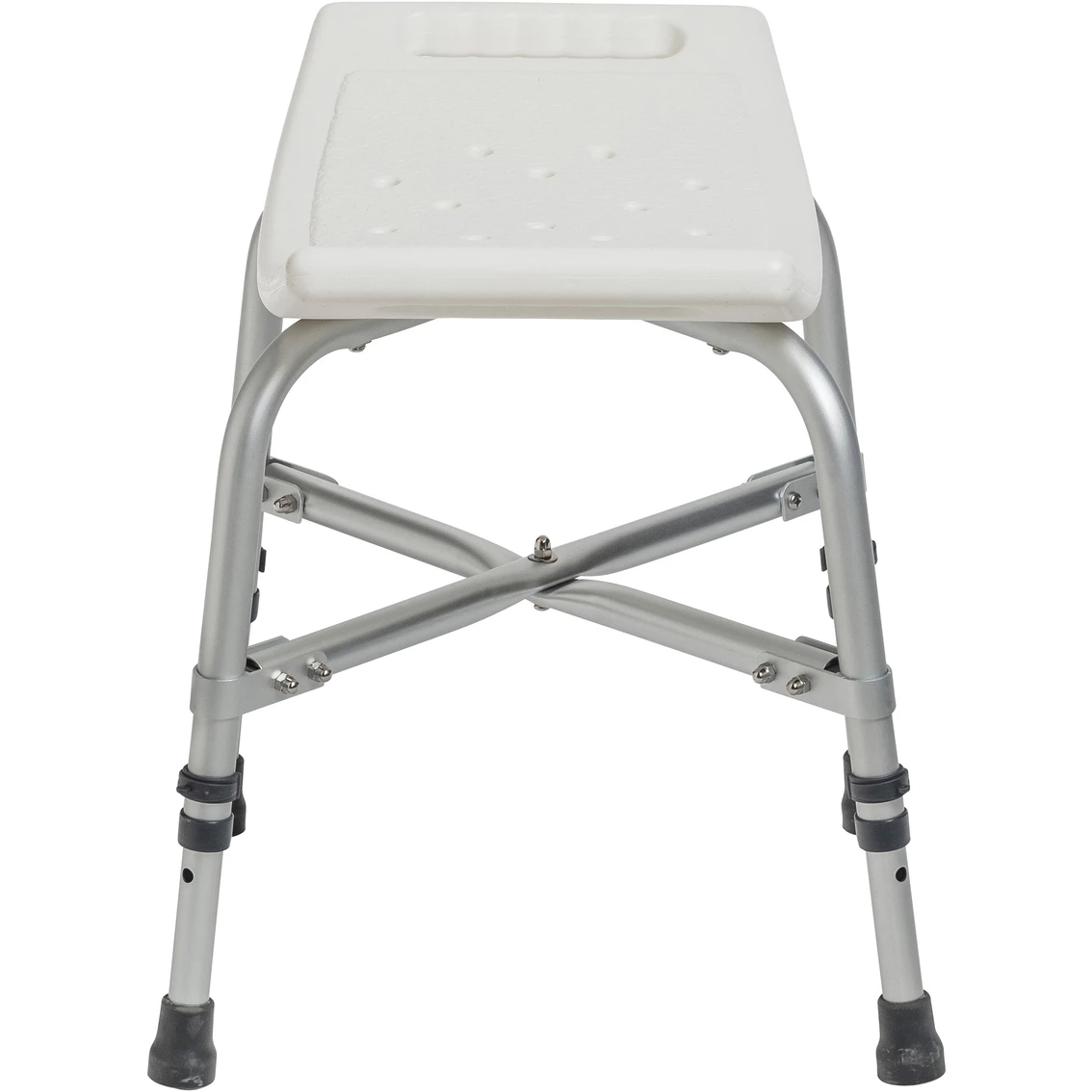 With a 500-pound weight capacity, this bariatric bath bench from Drive Medical is strong and sturdy. A cross brace attached with aircraft style rivets provides dependable strength. The blow molding on the seat are contoured to provide extra comfort. Drainage holes in the seat reduce slipping, while adjustable height legs ensure a proper fit. The aluminum frame is lightweight, durable and corrosion proof. Model: 12022KD-1.