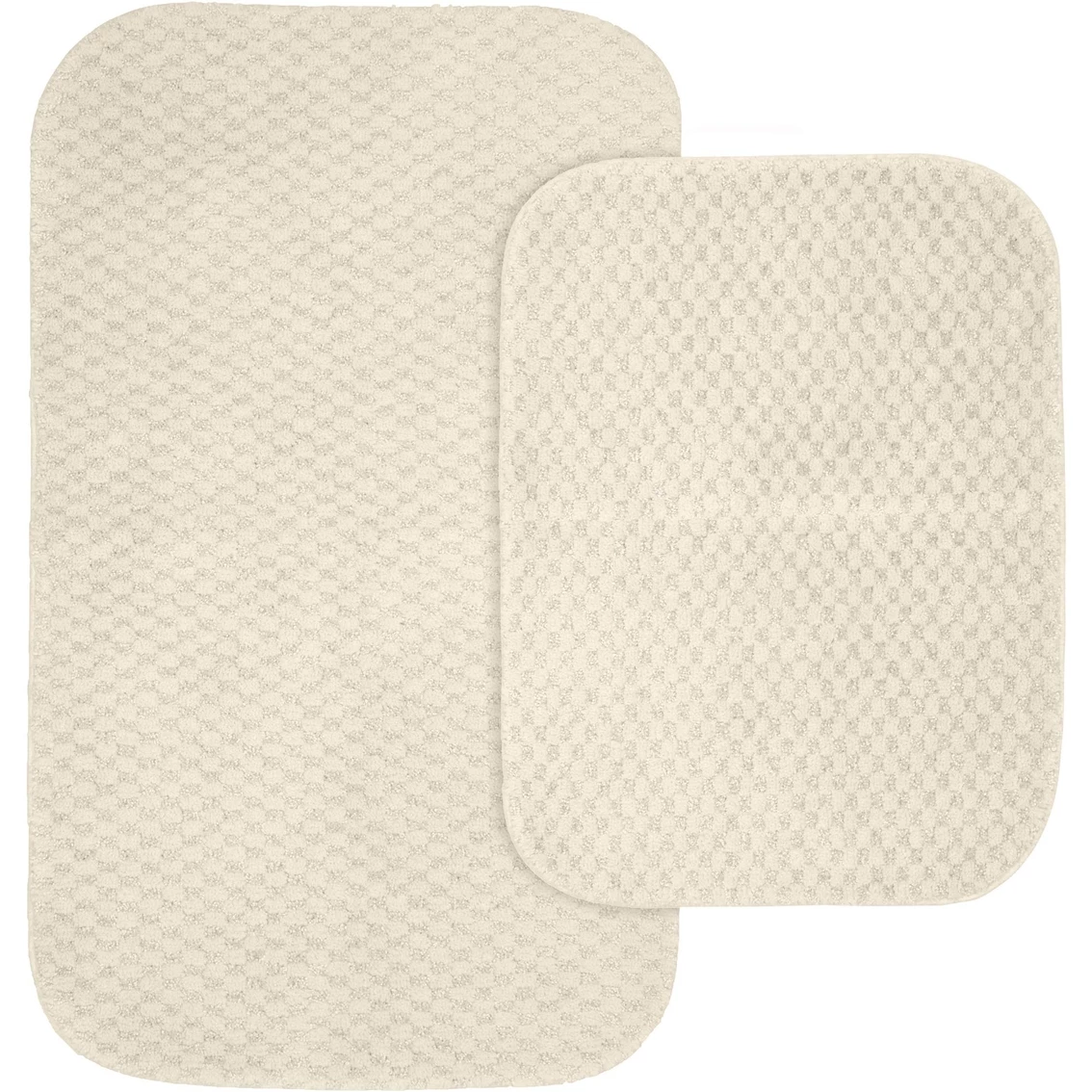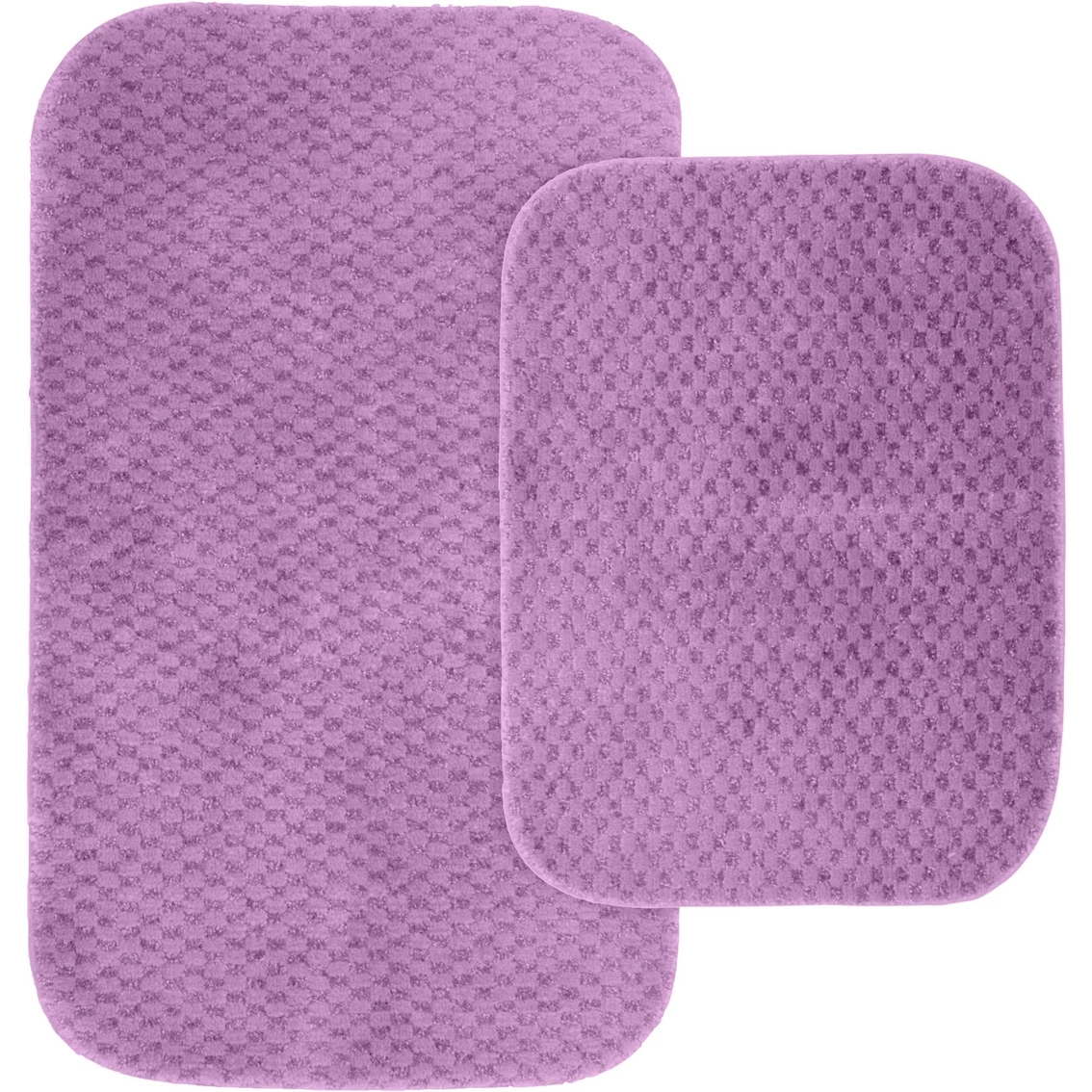 Spruce up your bathroom with a practical accent that features vibrant colorfast construction, finished edges and non-skid backing. This Cabernet Bath Rug set from Garland Rug is super soft and versatile; elevate your decor without sacrificing utility. Skid-resistant, finished edges for durability and a tailored aesthetic. Set includes a 17 in. x 24 in. and 21 in. x 34 in. rug. Model: BA070W2P04.