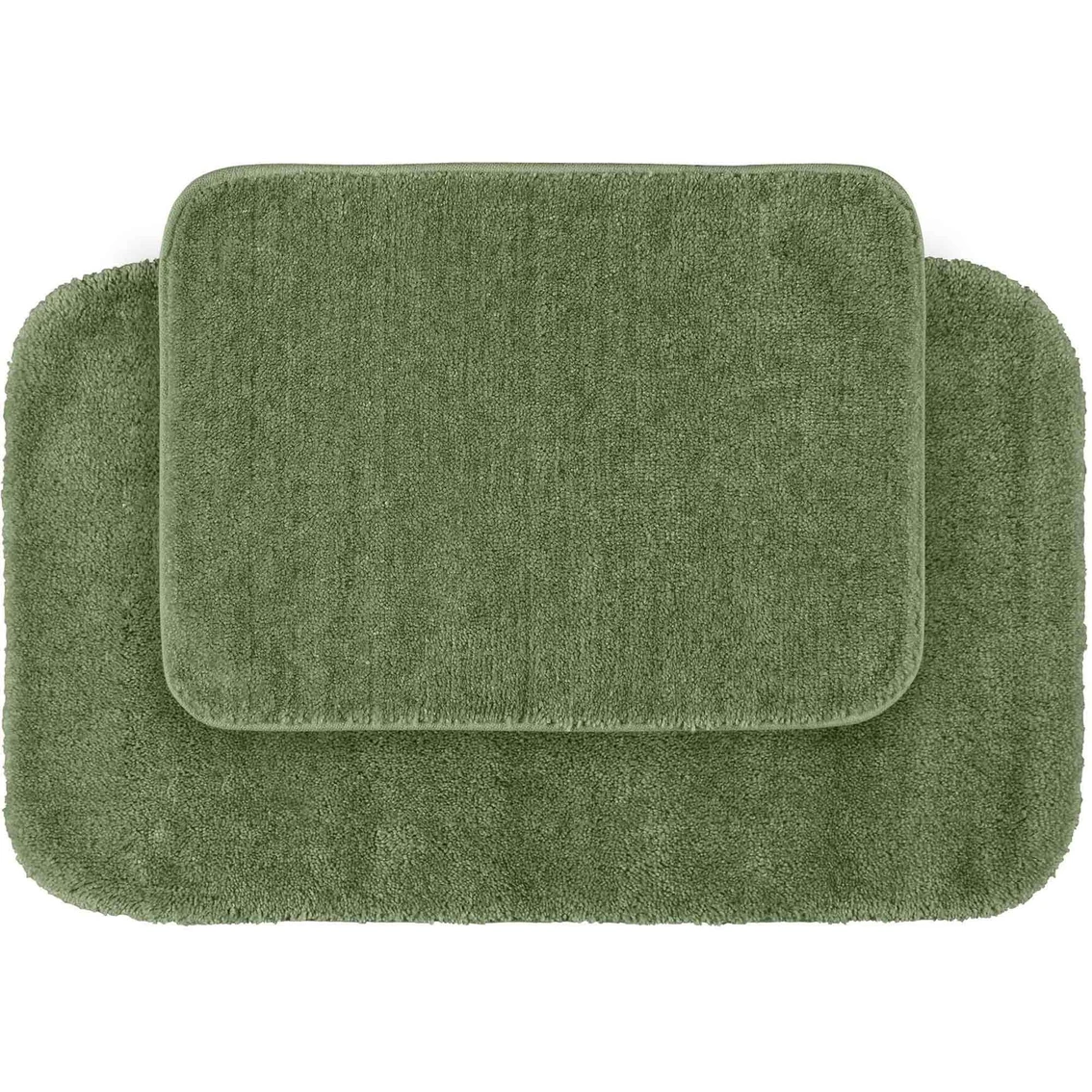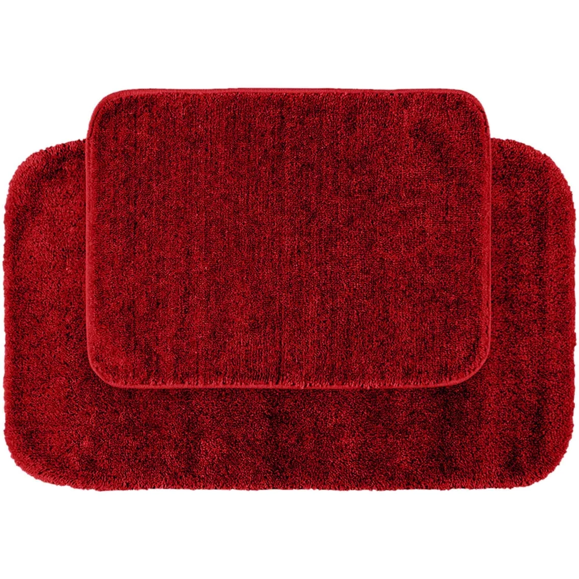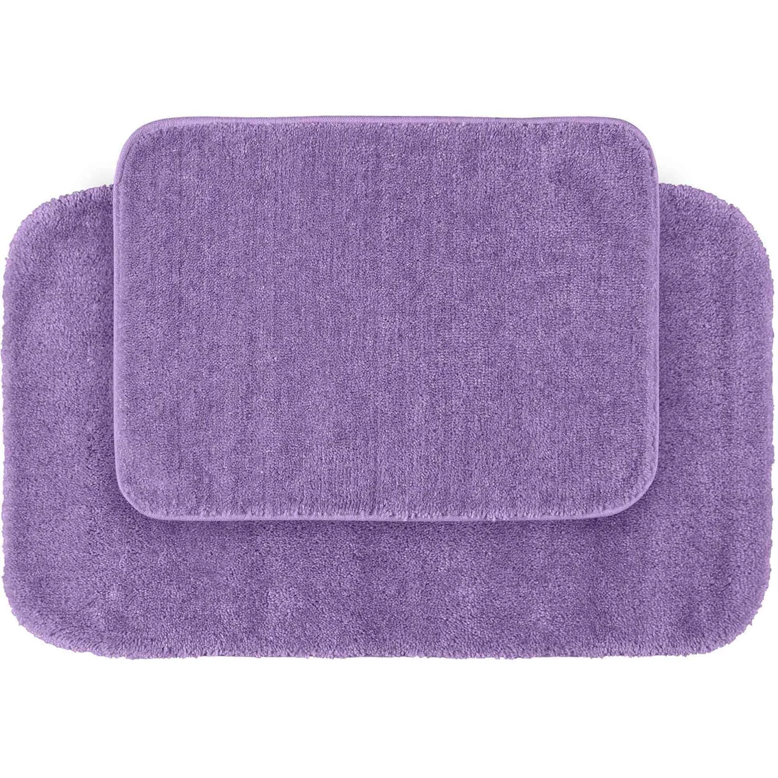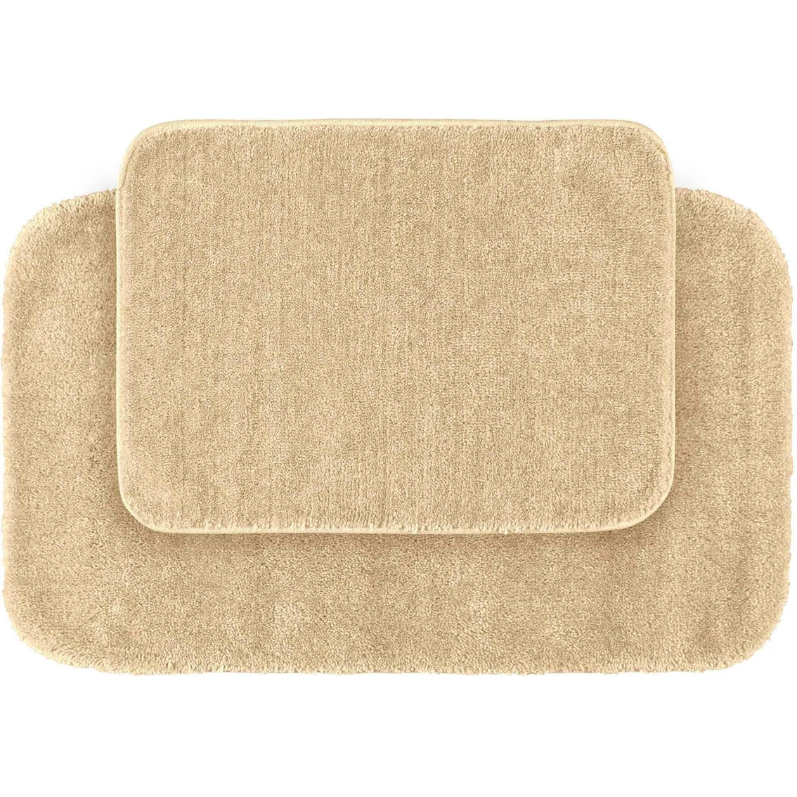 Traditional Bath Rugs from Garland Rugs will complement any bathroom decor. This 2 pc. set includes one 17 x 24 in. rug and one 21 x 34 in. rug. The basic plush design has a classic look, non-skid backing and finished edges. Traditional Bath Rugs are proudly made in the USA with 100% nylon for superior softness and quality